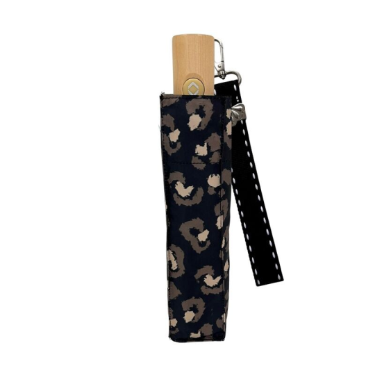 Parapluie compact automatique Léopard Noir
