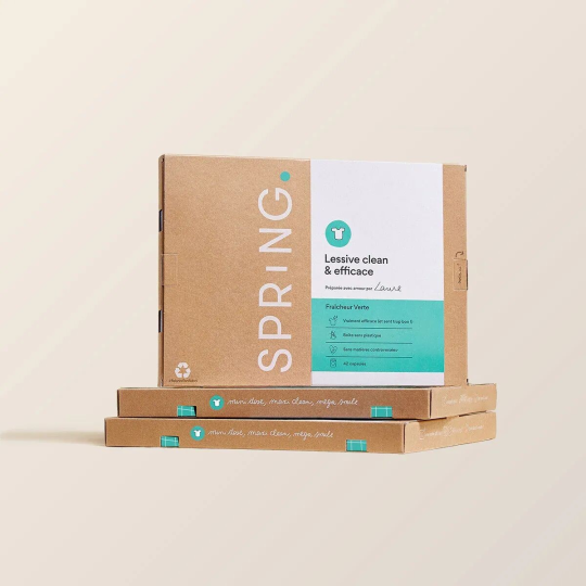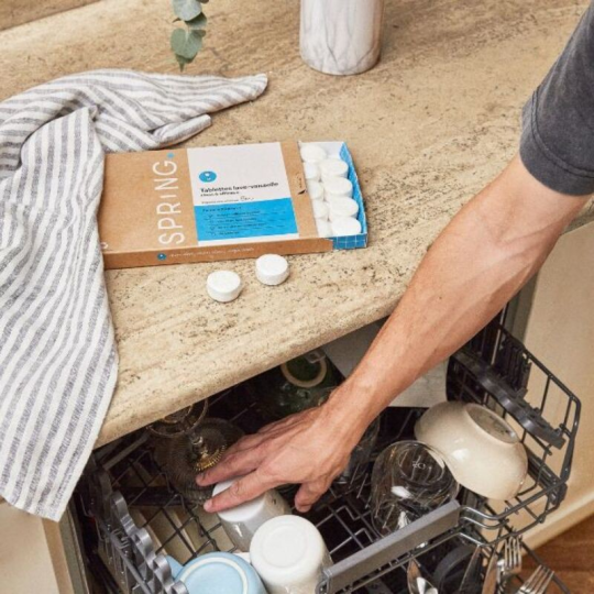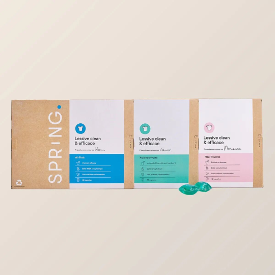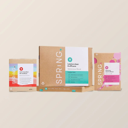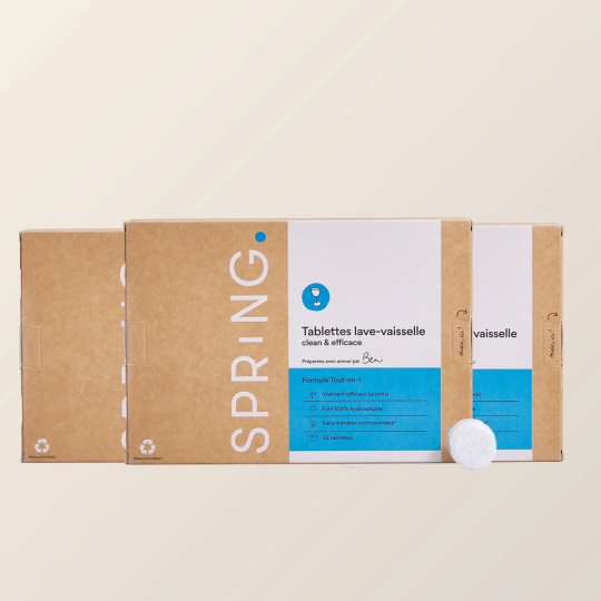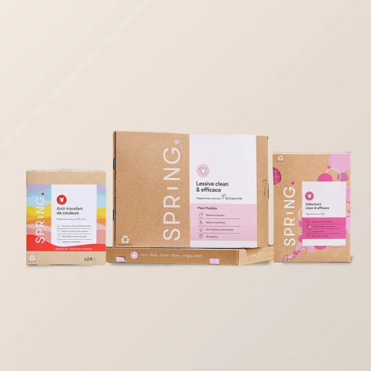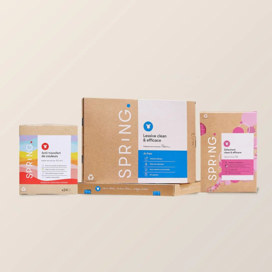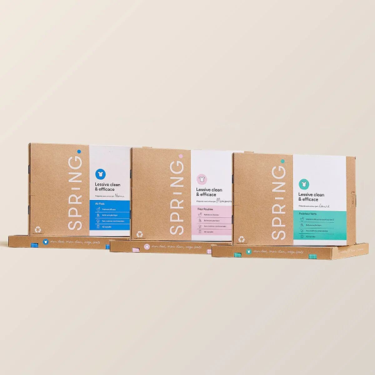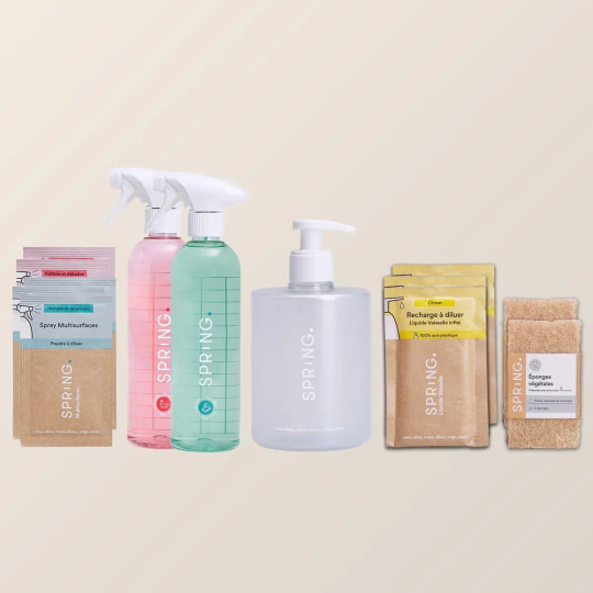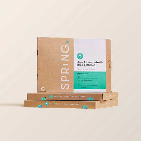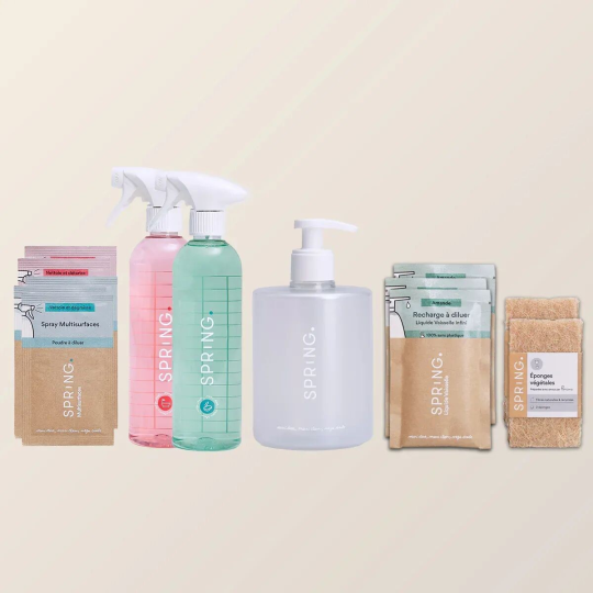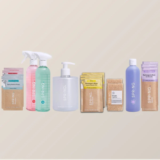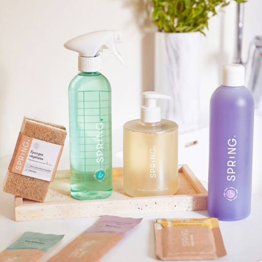 SPRiNG a également développé des tablettes pour lave-vaisselle, capsules lave-vaisselle, liquides vaisselle rechargeables et éponge. Ces produits garantissent un nettoyage impeccable, même en cycle court, tout en évitant les résidus nocifs pour la peau et l’environnement. Chaque flacon est réutilisable, et les recharges se présentent sous forme éco-conçue et concentrée.