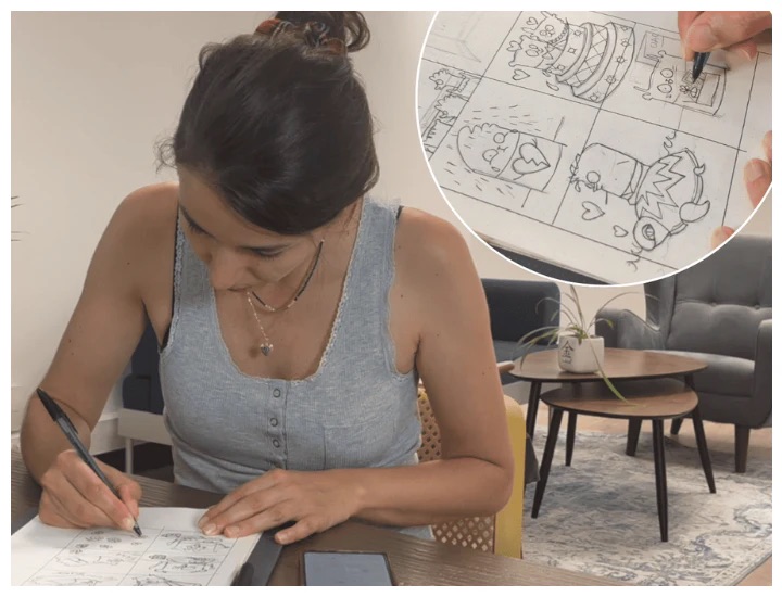 Aurélie dessine chaque petit personnage au stylo bille, Benjamin les scanne, pour les coloriser en numérique. Un processus artisanal, fait maison… mais le résultat ? Tout simplement bluffant !