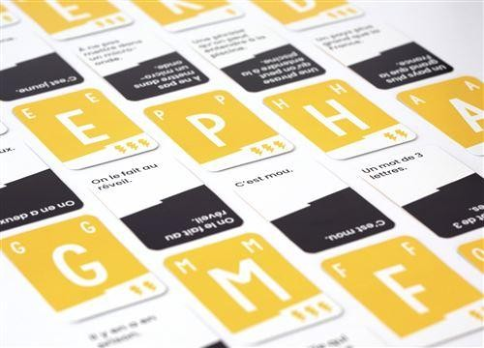 🤩 Chaque joueur doit se débarrasser de sa main le plus rapidement possible en donnant une réponse en lien avec le thème en jeu dont l'initiale correspond à une des cartes Lettre qu'il possède.