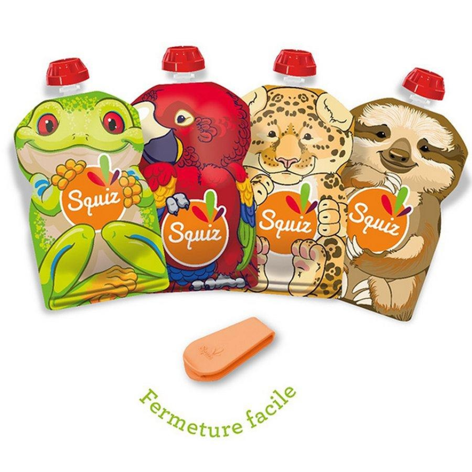 LOT DE 4 GOURDES RÉUTILISABLES • COLLECTION AMAZONIE + 1 SQUIZ'ZIP