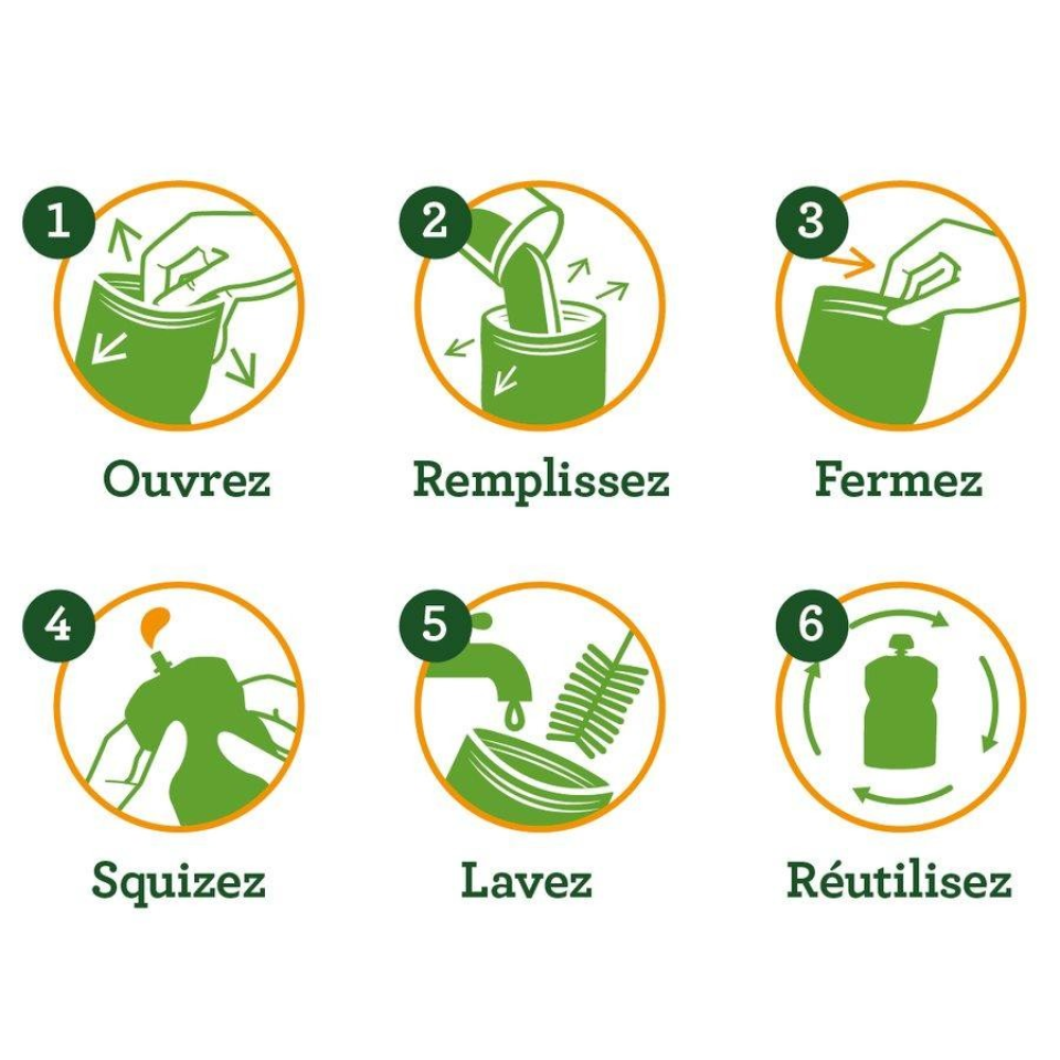 RECHARGEABLE, LAVABLE & REUTILISABLE : la gourde alimentaire SQUIZ se prête à toutes les préparations salées et sucrées. Achetées en grand contenant ou préparées maison, aucune limite à votre imagination culinaire. Grâce à sa large ouverture, la gourde SQUIZ est facile à remplir. Le nettoyage, à l’eau tiède ou au lave-vaisselle, est également facilité grâce aux bords arrondis, sans angles et grâce à notre plastique intérieur lisse.