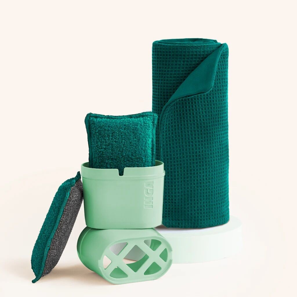 Découvrez les deux produits stars de la cuisine INGA. Dans ce pack, vous trouverez 2 éponges lavables avec leur porte-éponge et un rouleau de 5 feuilles d'essuie-tout réutilisable