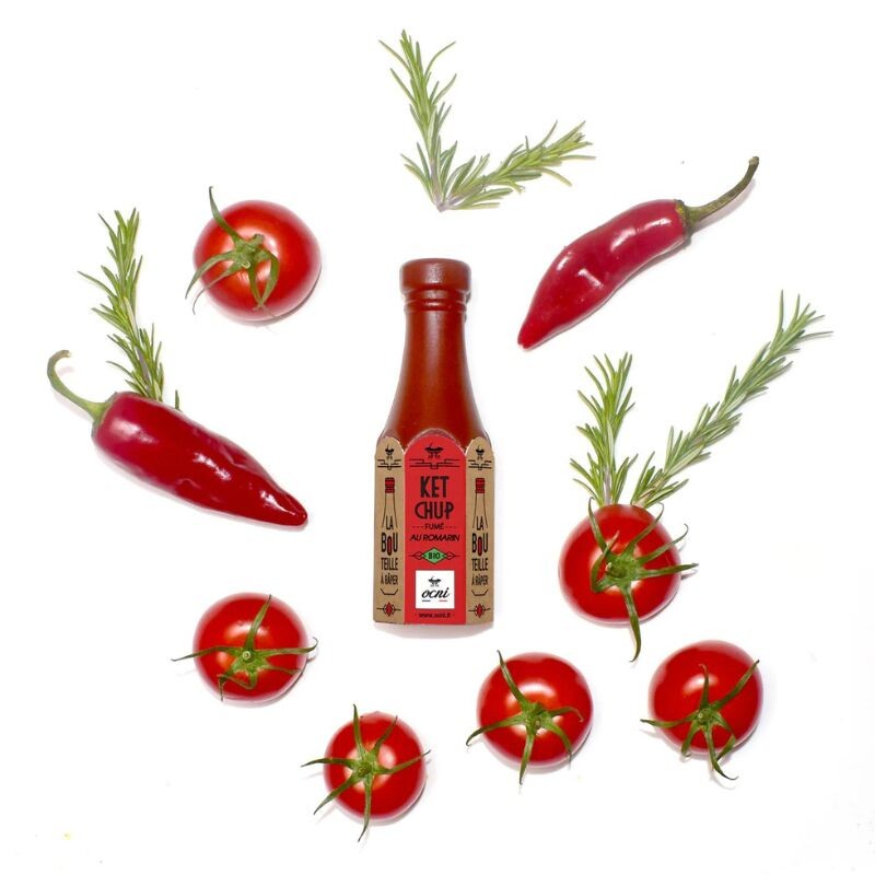 Ketchup fumé & romarin (BIO) idéal avec Street food, pizzas, légumes grillés, et gratins.