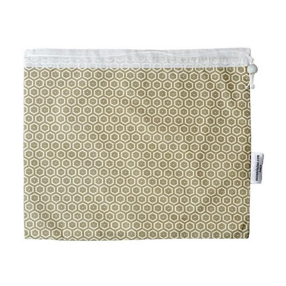 Sacasalades est un sac alimentaire à double enveloppe, en coton pour la partie intérieure et en coton enduit pour l'enveloppe externe.