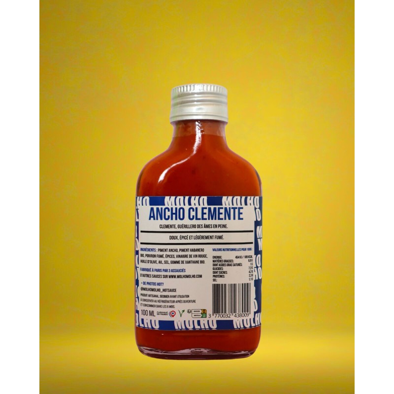 🫑 Ingrédients : Piments Ancho, piments Habanero, poivron fumé, vinaigre, huile d’olive, ail, cumin, sel, gomme de Xanthane.