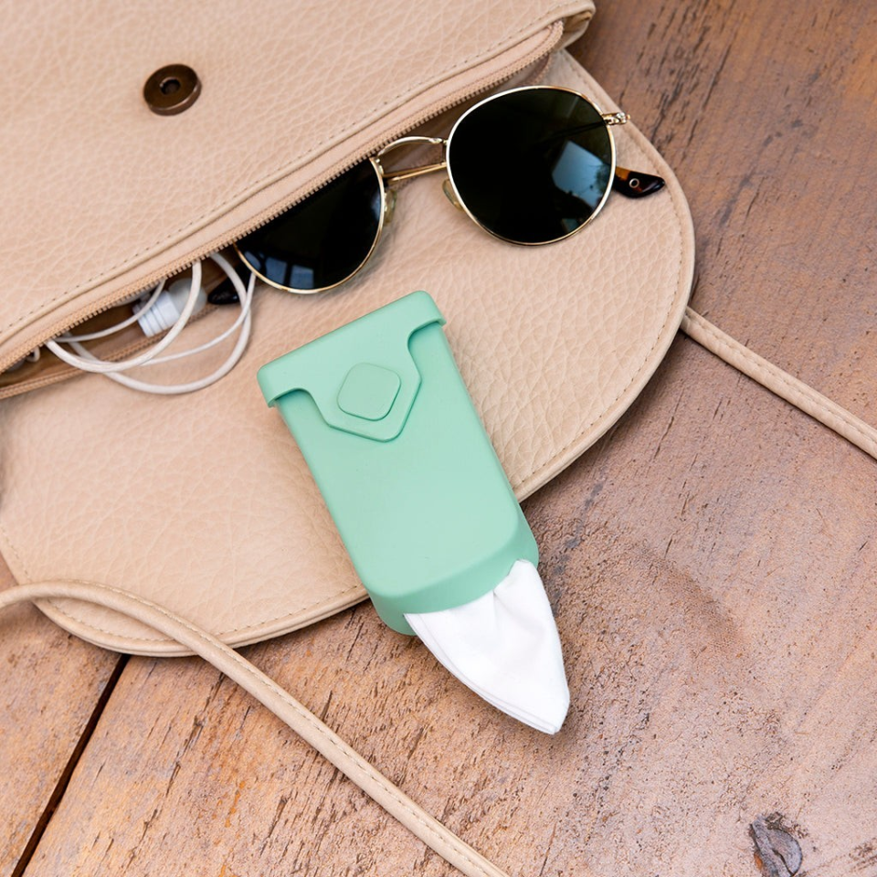 Les mouchoirs INGA viennent dans leur étui souple avec 2 compartiments séparés : un pour les mouchoirs propres, un pour les sales. Et hop, c’est dans la poche !