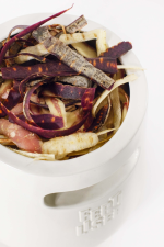 - Prenez le seau à compost et mettez-le dans un composteur extérieur. (A+B)