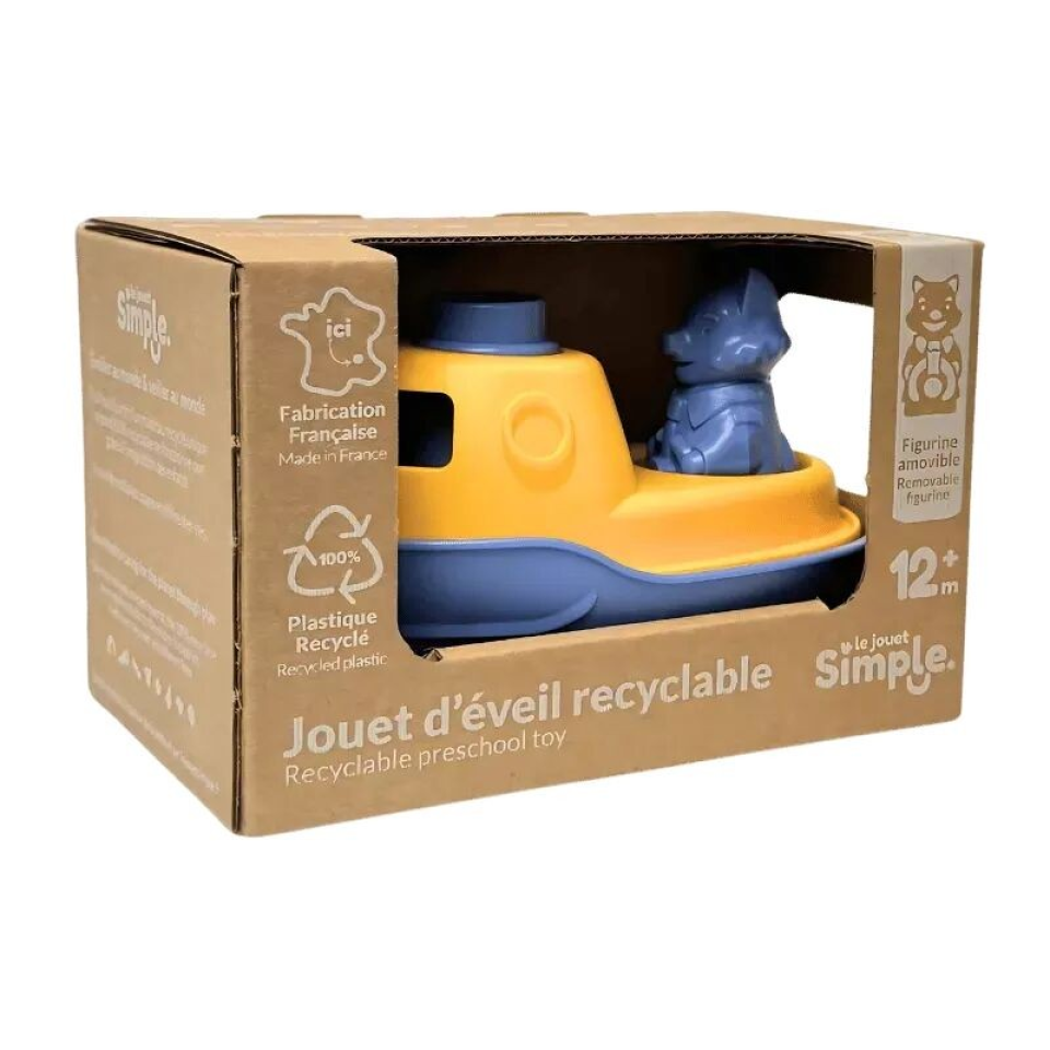 Seulement du plastique recyclé PEHD. Ni colle, ni métal, ni vis, ni autocollants. Notre bateau et sa figurine sont uniquement fabriqués à partir d'un plastique recyclé unique. Tout est dans le design et la notion d'encastrement des pièces. C'est notre recette pour concevoir des jouets 100% recyclables, 100% résistants et 100% lavables à l'eau.