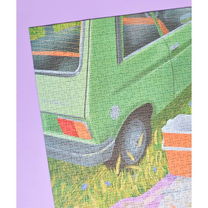 Conçus sans plastique, avec des encres végétales sur carton recyclé, les puzzles sont entièrement fabriqués en France. De l’impression à Nancy au découpage près de Troyes. Le packaging est optimisé pour limiter déchets et transport inutile, reflétant un engagement fort pour un mode de vie plus slow, écoresponsable et juste.