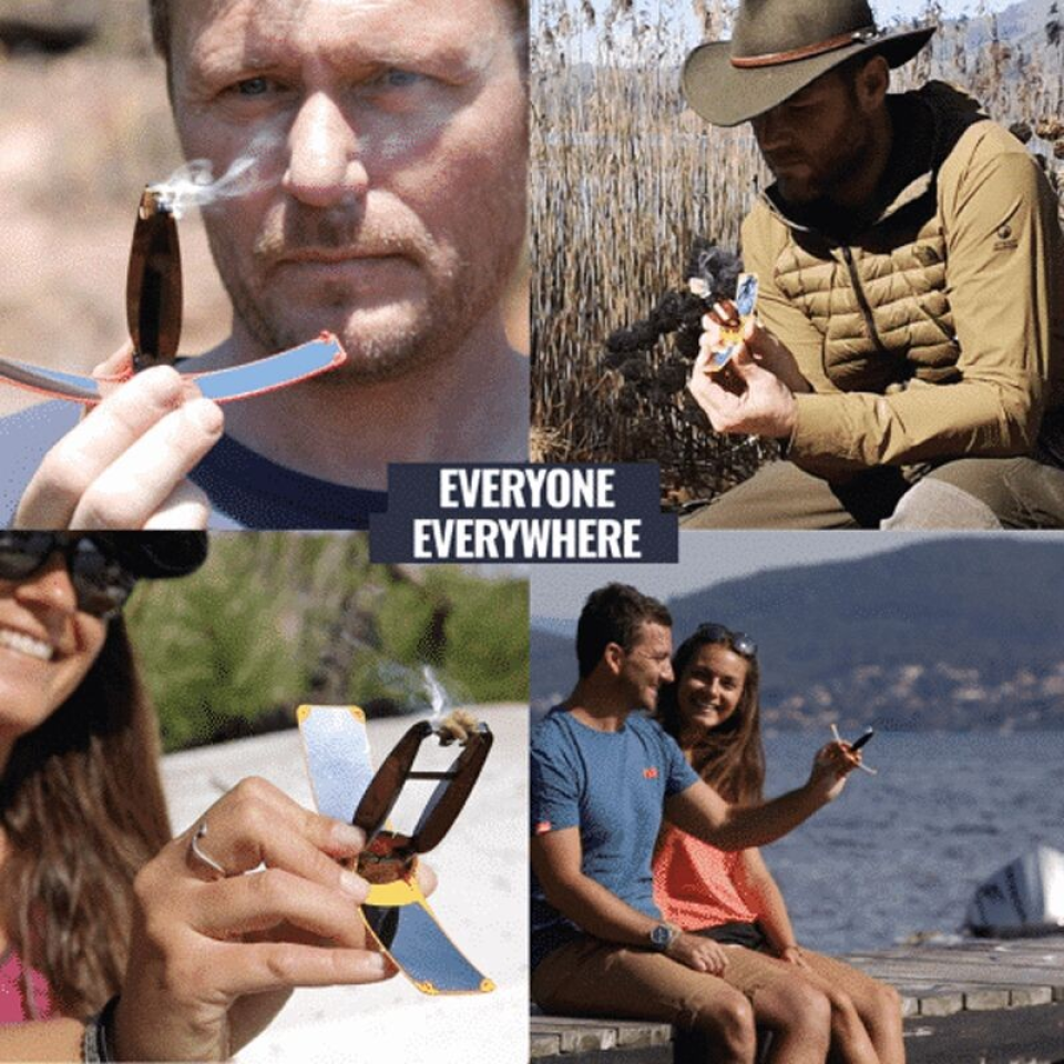 Le Suncase Gear est un allume-feu solaire ultra-compact. Il concentre les rayons du soleil en un point focal pour un allumage immédiat par incandescence (en 3 secondes).
