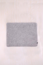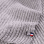 Le fil utilisé pour tricoter cette écharpe provient d'une filature française. 100% recyclé à partir de vêtements usagés, ce fil ne subit aucun traitement chimique et est ainsi certifié GRS (Global Recycled Standard).