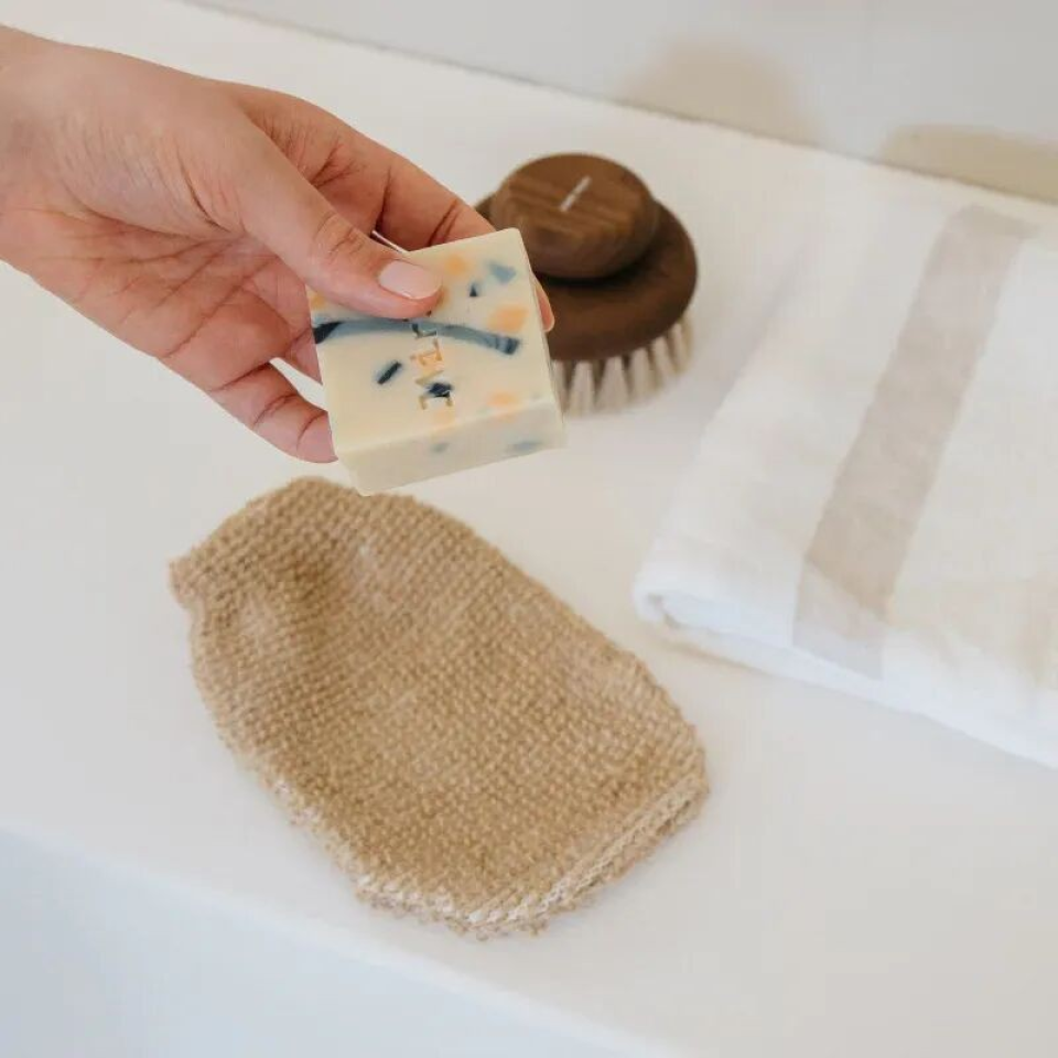 Gant de gommage exfoliant en Jute