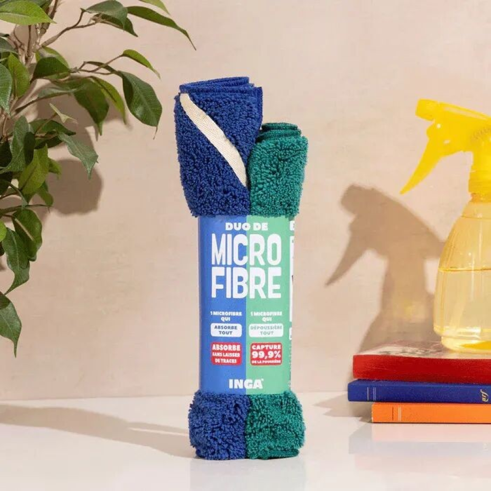 1 microfibre anti-poussière et 1 microfibre absorbe-tout