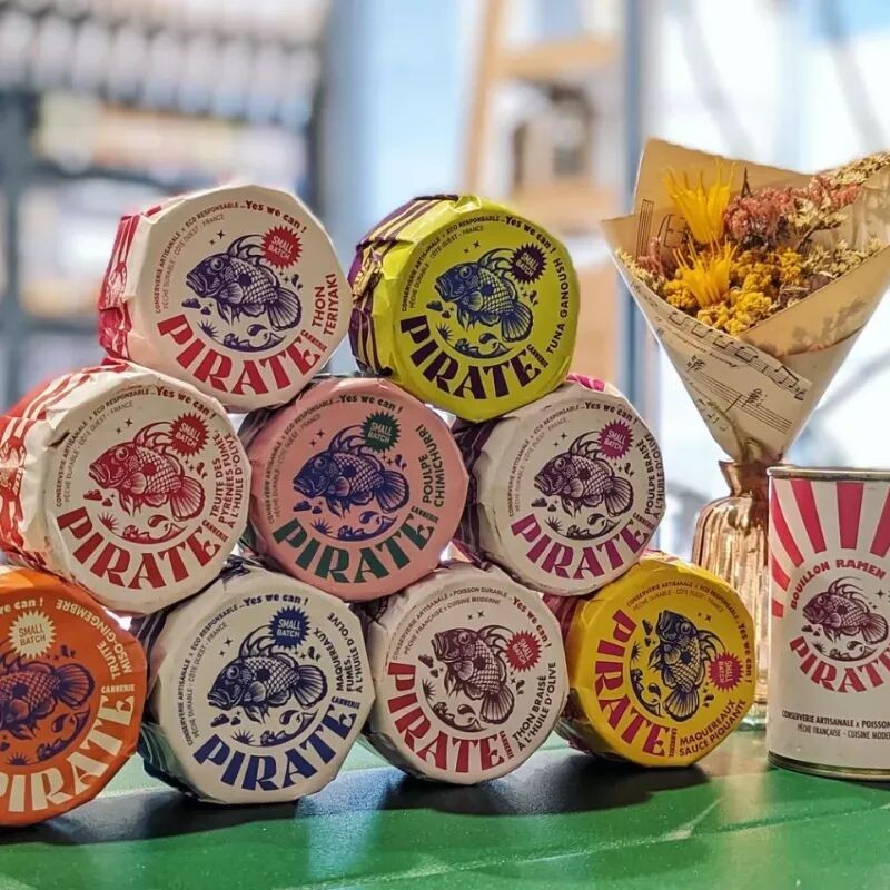 🐟 Pirate Cannerie est une micro-conserverie artisanale de poisson située dans les Landes. Elle a comme objectif de rendre la consommation de poisson plus durable grâce à des recettes modernes et savoureuses. Elle propose une sélection de conserves à base de poissons directement issus de la pêche locale et aux emballages haut en couleur.