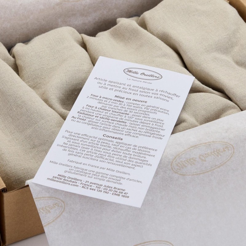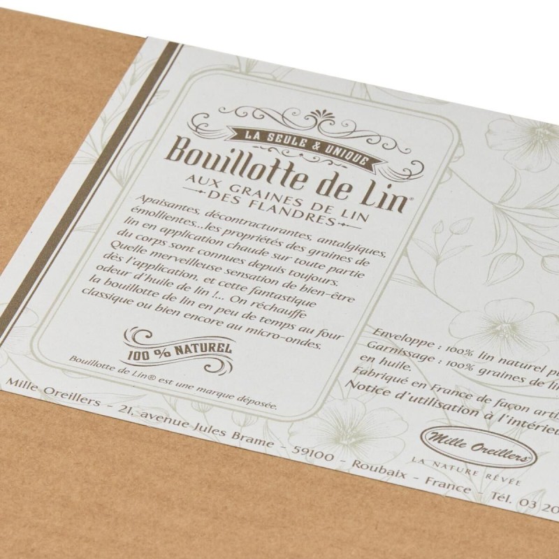 Mille Oreillers fabrique depuis plus de 20 ans à Roubaix une large gamme de bouillottes et compresses chauffantes 100% naturelles et de qualité, de toutes tailles, destinées à soulager diverses parties du corps, notamment par l’effet décontracturant et antalgique réputé des graines de lin, culture locale de l’entreprise.