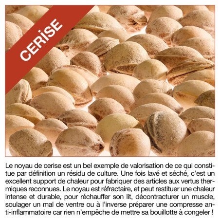 🍒 La bouillotte garnie de noyaux de cerises est une solution bien connue, pratique et efficace pour réchauffer son lit et soulager ses douleurs passagères, notamment sur le ventre, par une chaleur apaisante et réconfortante.