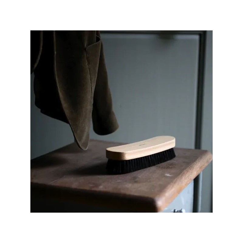 Cette brosse allie tradition, fonctionnalité et design pour un soin respectueux des textiles au quotidien.