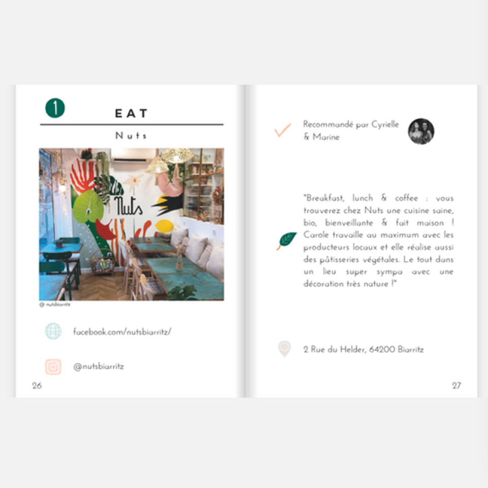 - Une liste des meilleures adresses engagées de la ville dans 4 catégories: Eat, Drink, Shop & Explore