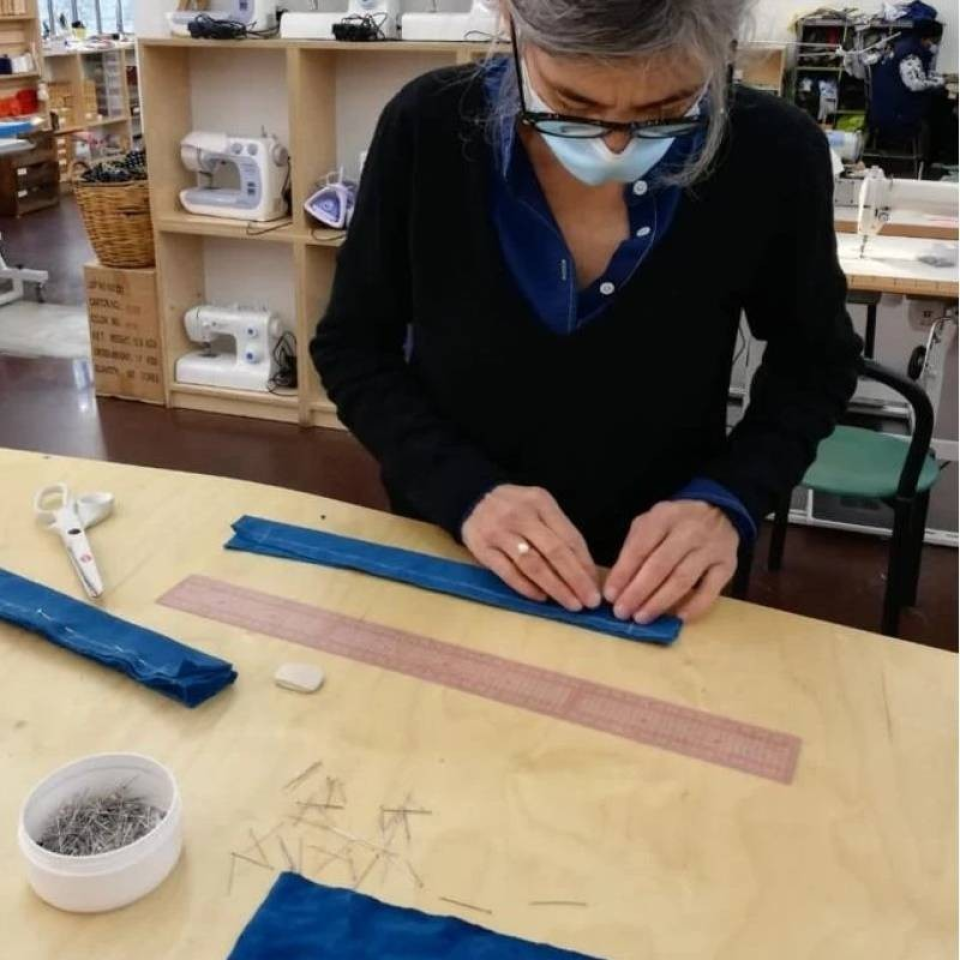 Le tissu est issu des chutes de production de la marque Ateliers Unes et peut être en velours, coton ou en tencel ce sera la surprise !