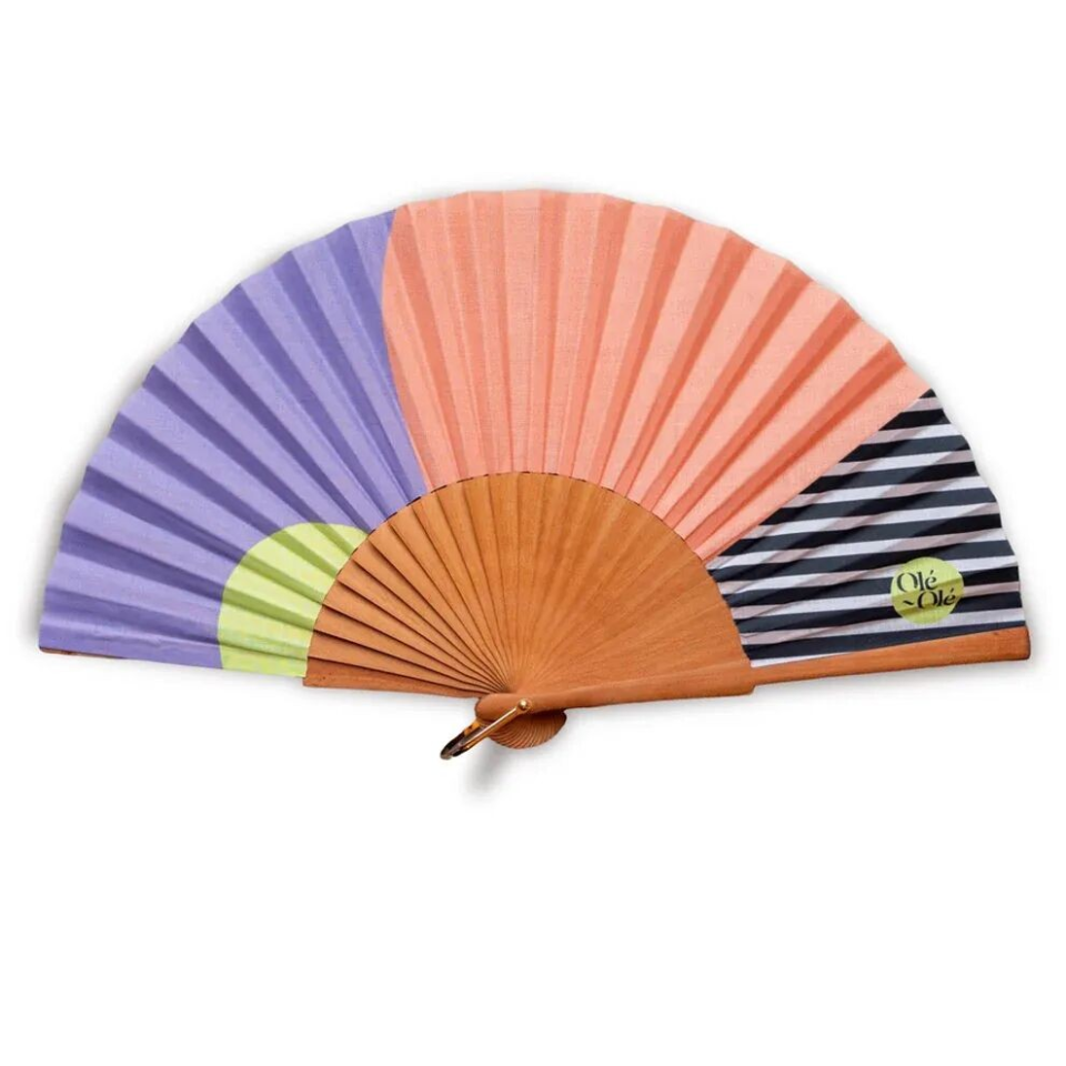 🪭 Couleurs vives, design graphique, lignes noires et blanches, signatures de la marque Olé~Olé font de ce modèle l’accessoire ultime de ton look d’été !