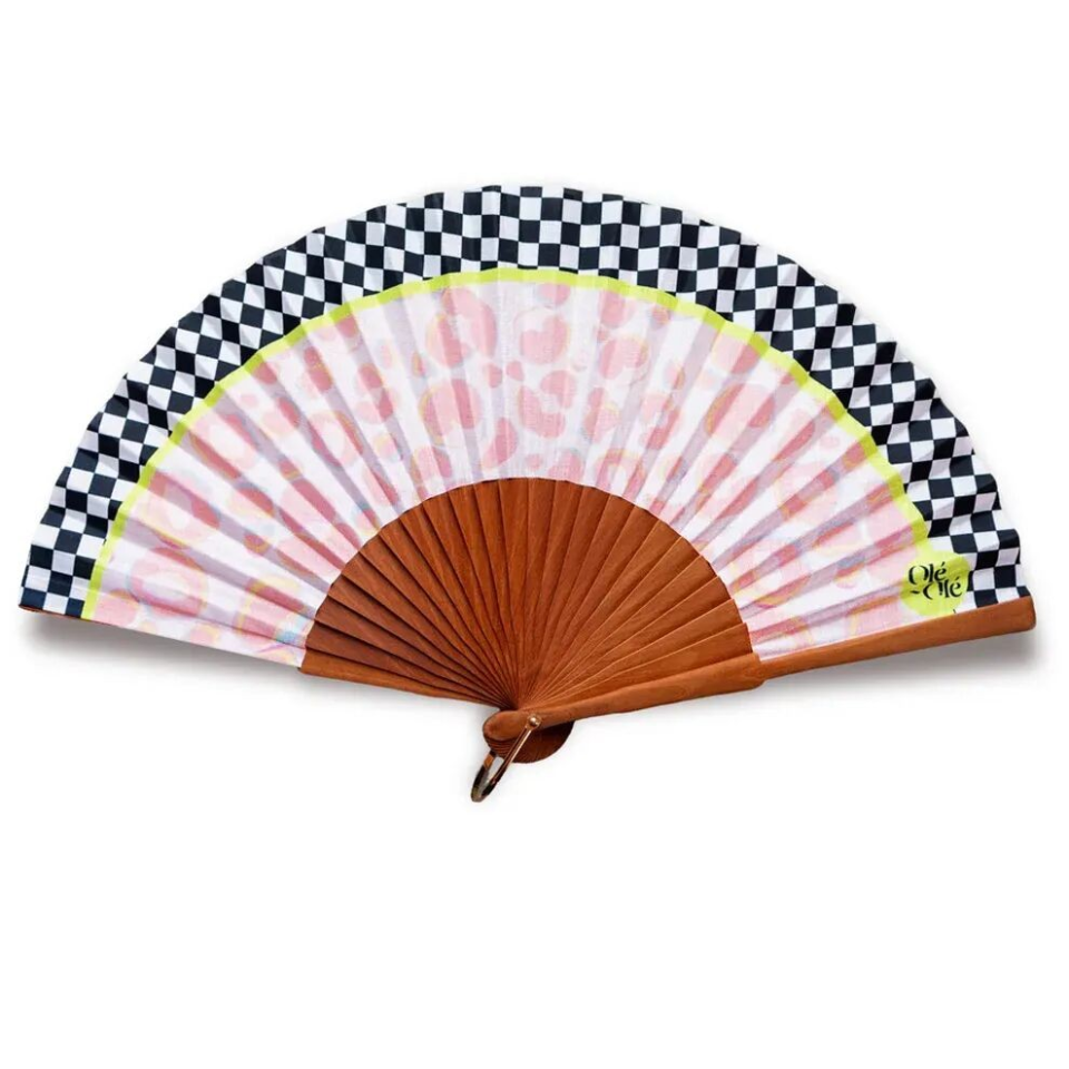 🪭 Couleurs vives, design panthère, damier noir et blanc, signatures de la marque Olé~Olé font de ce modèle l’accessoire ultime de ton look d’été !
