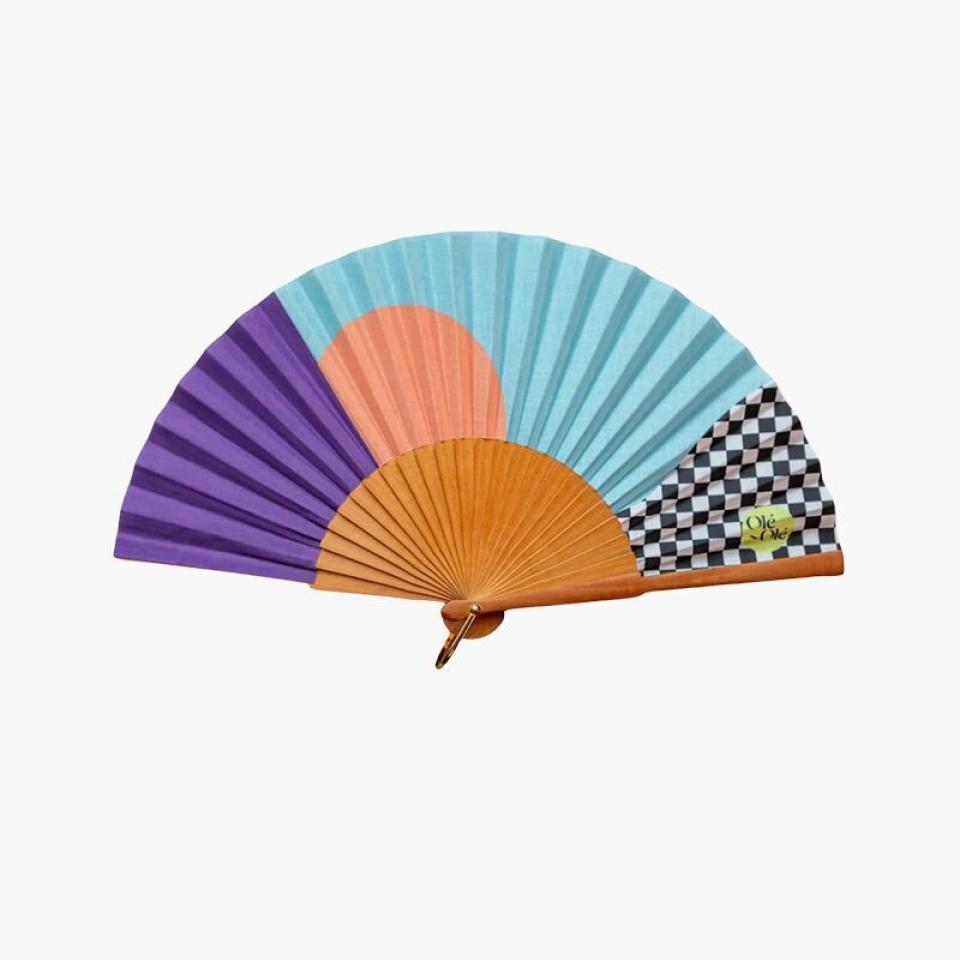 🪭 Couleurs vives, design graphique, lignes noires et blanches, signatures de la marque Olé~Olé font de ce modèle l’accessoire ultime de ton look d’été !