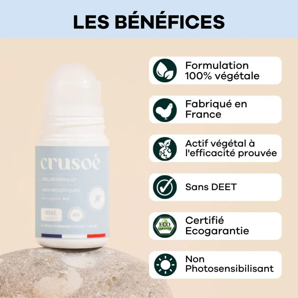 🍼Adapté aux bébés à partir de 6 mois ainsi qu'aux femmes enceintes à partir du 4eme mois de grossesse, le Roll-on Anti-moustiques est efficace pendant 4 heures en zones tempérées.