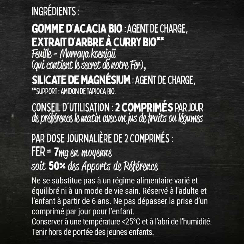 😁 Ce complément alimentaire naturel, biologique et vegan permet une complémentation en Fer durant 45 jours.