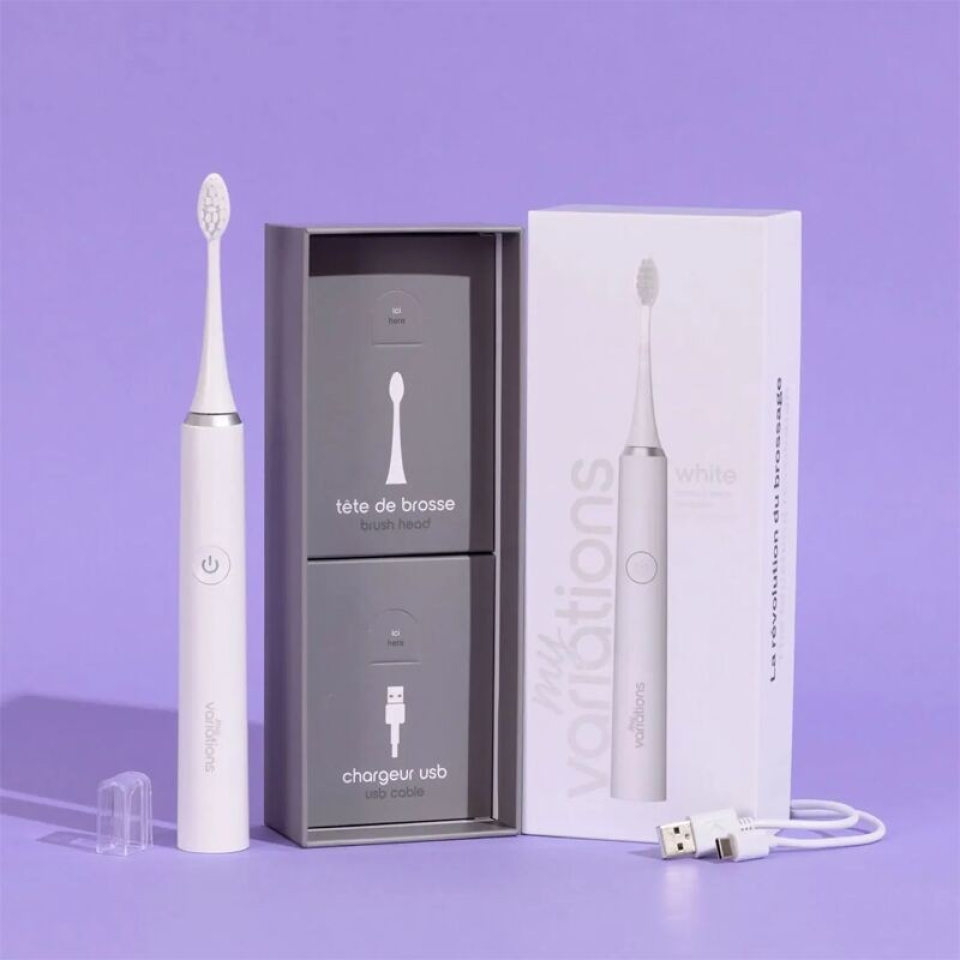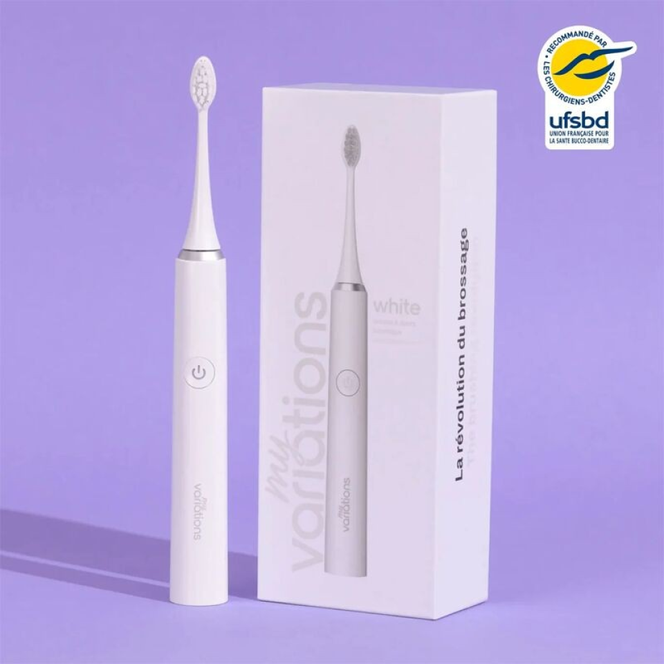 🪥 Conçue en partenariat avec des dentistes, la brosse MyVariations est équipée de la technologie sonique : efficace sans abimer vos gencives, et dispose d'un mois d'autonomie ! Elle s'adaptera parfaitement à votre sourire grâce à ses 5 modes de brossage, et nettoiera vos dents en profondeur.