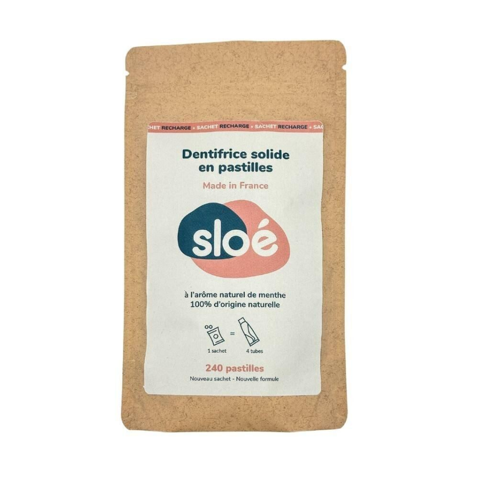 Format en sachet de 240 pastilles : idéal pour recharger ta boîte vide. Notre sachet est composé à base de papier et d'amidon de maïs. Il est 100% recyclable ♻️